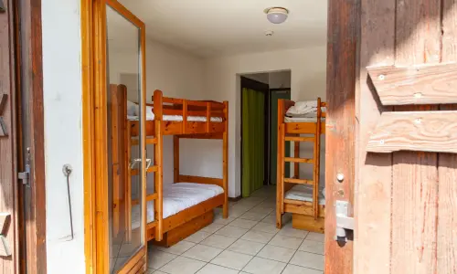 Le chalet compte 26 chambres d’une capacité de 2 à 8 personnes, avec lits individuels et salles de bain (avec douche, lavabo, toilettes) intégrés.